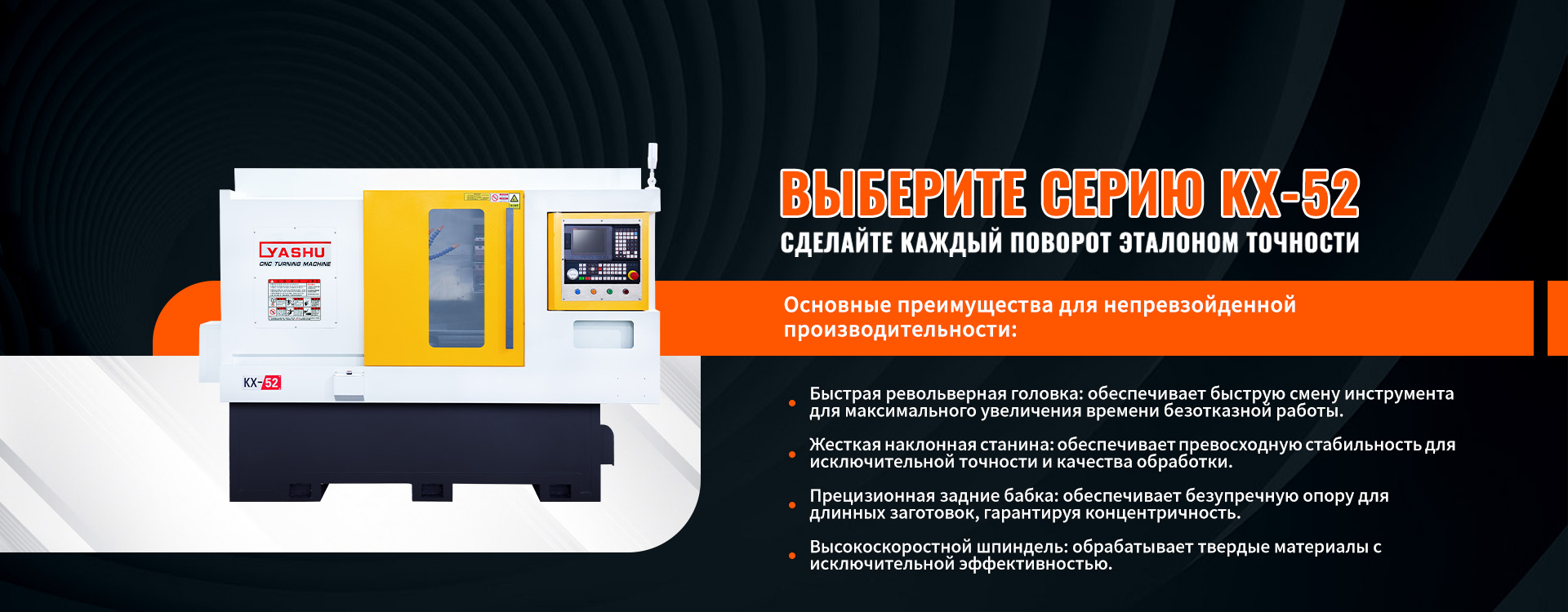 Токарный станок KX-52J с револьверной головкой и задней бабкой Сочетает в себе высокую производительность и надежность. Револьверная головка позволяет вып...